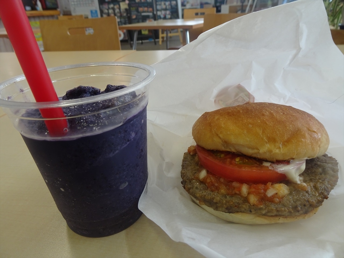 馬鹿(うましか)バーガーと桑の実スムージーをいただきました。