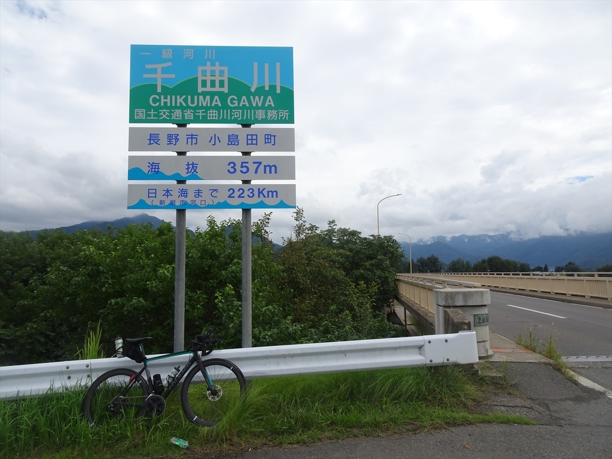 千曲市に入るくらいまでは近くに山が迫っていていい景色なんですが、長野盆地が広がってくると普通のサイクリングロードになってしまって退屈…(笑)